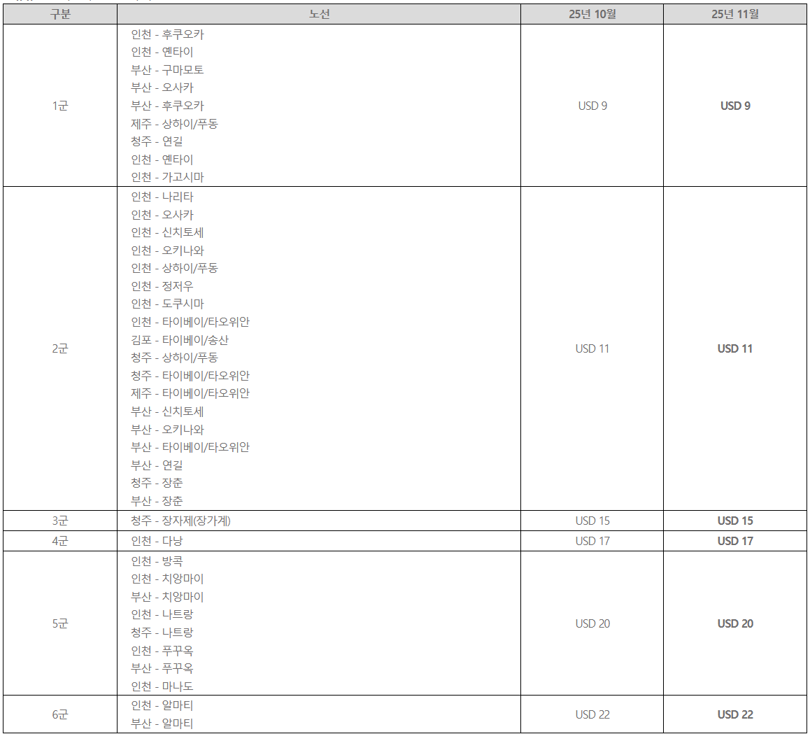 ▷ 유류할증료는 1개월 단위로 사전 고지되며, 탑승일과 관계없이 발권일 기준으로 적용됩니다