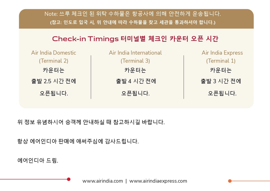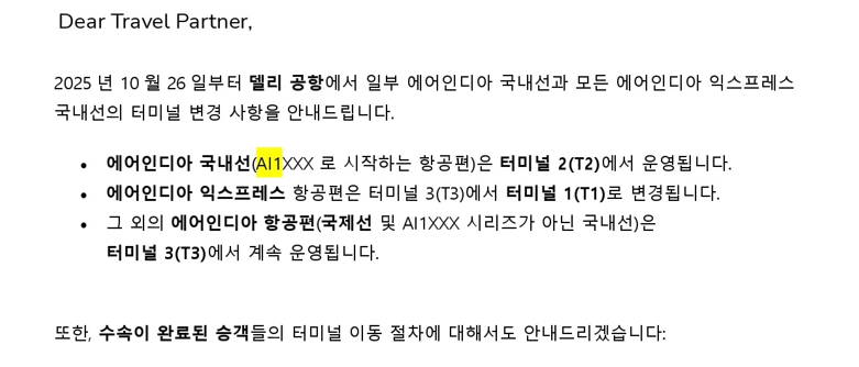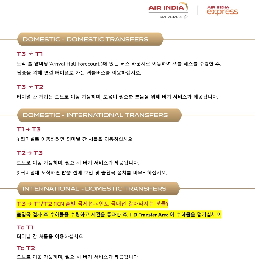 공지사항 [에어인디아] 인도 델리공항 국내선 터미널 변경 안내