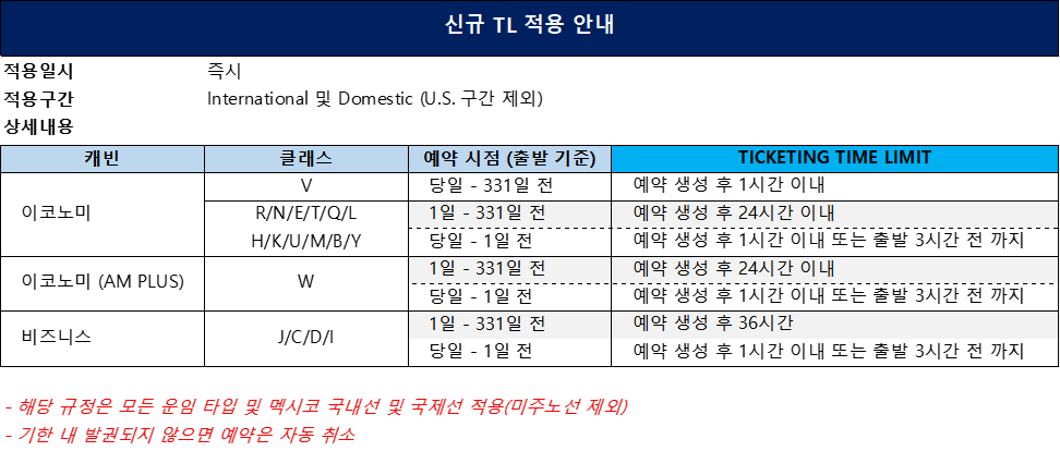 발권 TL 관련하여 본사의 정책이 다음과 같이 변경됨에 따라 해당 내용 안내드립니다.