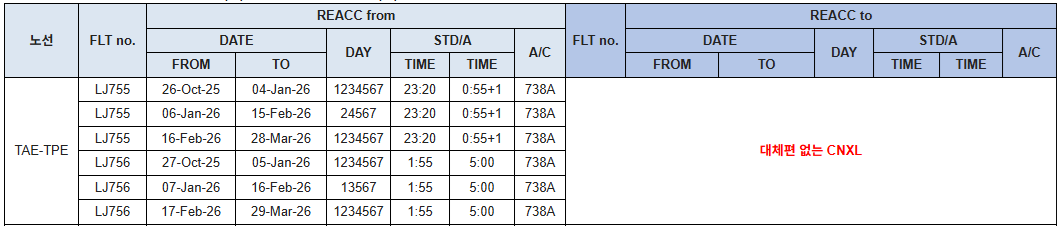 TAE/TPE 노선 FLT CNXL REACCM 관련사항 및 추가 H/D 지침을 안내드리오니 참고 부탁드립니다.