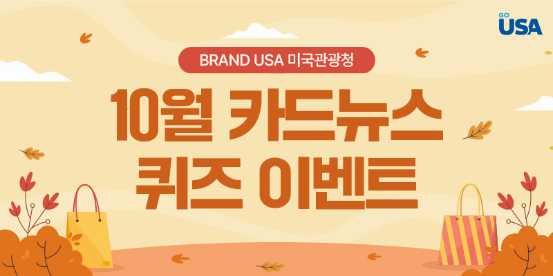 - 미국관광청 카카오 채널 친구 추가 후, ‘10월 카드 뉴스’ 포스트를 확인하세요.