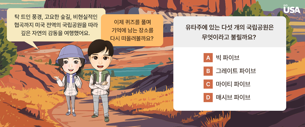 카드뉴스 내용을 참고하면 USA Discovery Program ‘National Parks (미국의 국립공원)’ 배지 이수에도 도움이 된답니다!